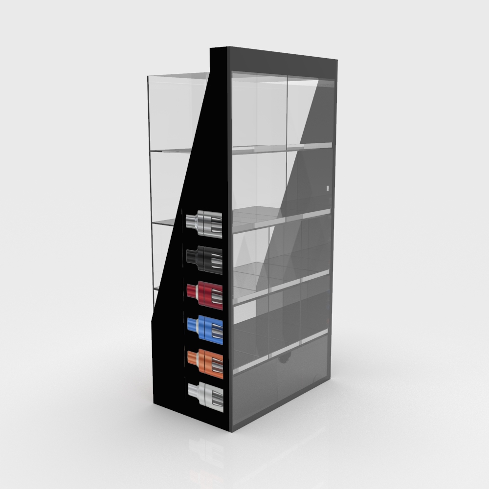 Most of the counter top vape display stand or cabinets are made by acrylic displays, the size and shape can be customized easily, it can be installed locks and pushers, multi layers and drawer are also be suppoted.